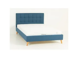 • Каркас и изголовье кровати обиты тканью в синем цвете