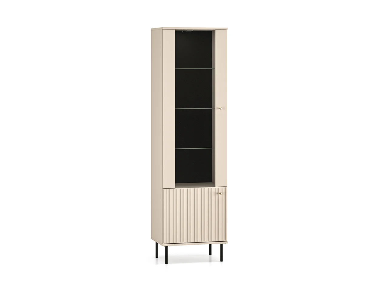Sophie 02 pakub enamat kui lihtsalt funktsionaalsust. See vitriinkapp on kaasaegse elegantsi sümbol. Kašmiiritooni viimistlus, MDF-ist freesitud esipaneelid, mati kullaga käepidemed ning tagasihoidlikud mustad jalad iseloomustavad kogu Sophie kollektsiooni.